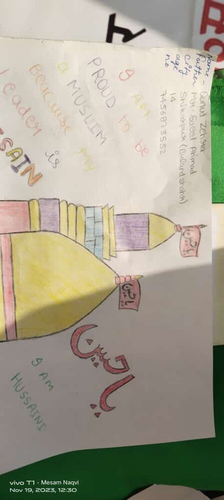अगले दिन इसी प्रोग्राम में बच्चों के लिए इस्लामी आर्ट कांपटीशन का इंऐकाद किया गया और जिसमें 140 बच्चों ने हिस्सा लिया और 14 बच्चों को इनाम से नवाज़ा गया।