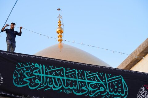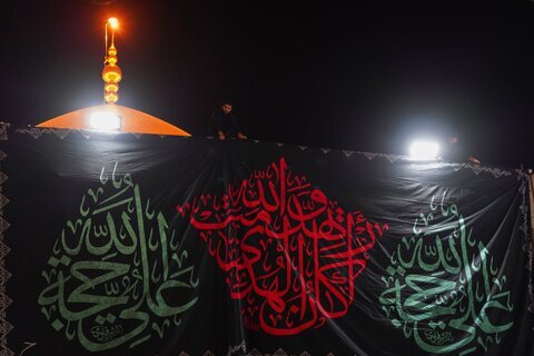 हौज़ा / इराक के काज़मैन शहर में स्थित हरम काज़मैन को हज़रत इमाम अली अलैहिस्सलाम की शहादत के मौके पर गुंबद पर काले परचम लगाए गए।