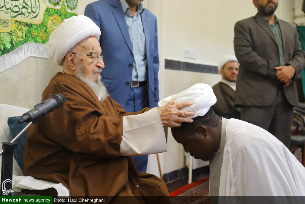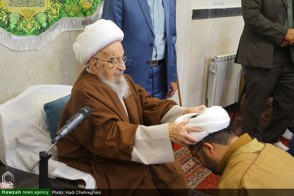 हौज़ा/ कुम अलमुकद्देसा में हज़रत फातिमा ज़हेरा स.ल. के जन्मदिन के अवसर पर हज़रत आयतुल्लाहिल उज़्मा मकारिम शीराज़ी के हाथों से दीनी विद्यार्थियों की अम्मामा…