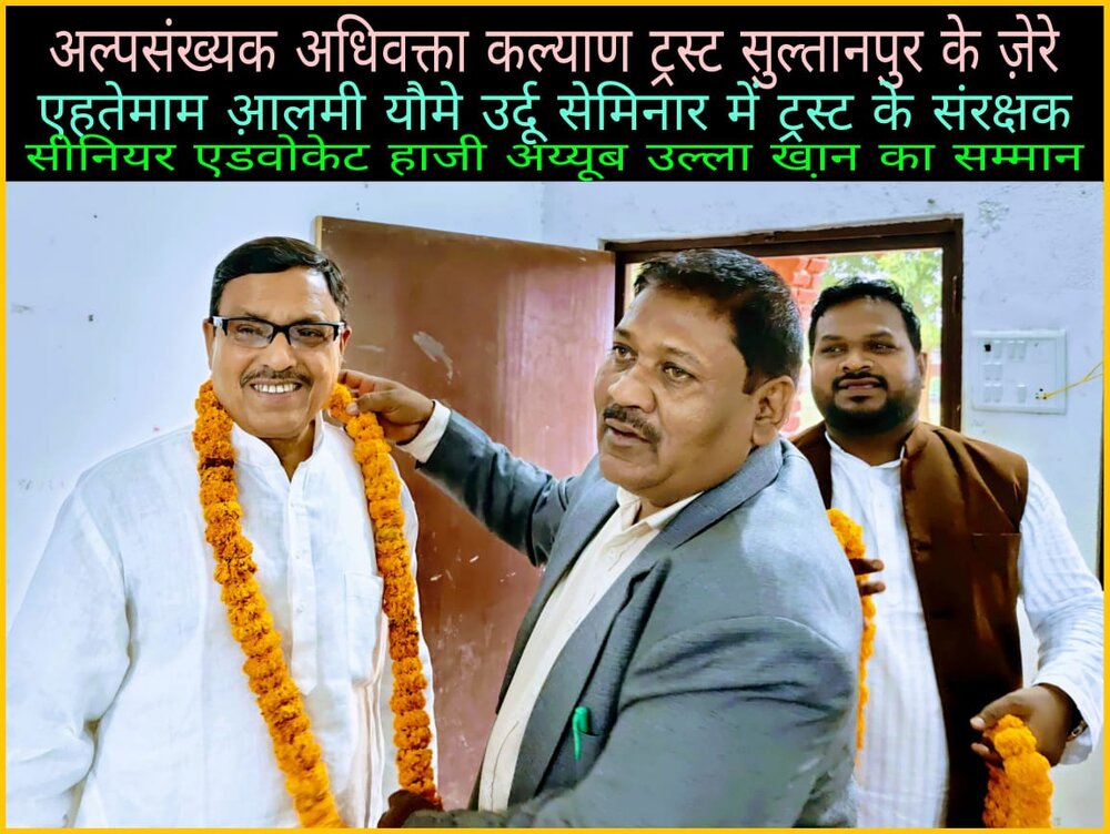हौज़ा न्यूज़ एजेंसी के अनुसार ,एक रिपोर्ट के अनुसार,सुल्तानपुर में अल्पसंख्यक अधिवक्ता कल्याण ट्रस्ट द्वारा एक आलमी यौमे उर्दू सेमिनार का आयोजित किया गया सेमिनार में दिखी गंगा जमुनी तहज़ीब की तस्वीर,सभी धर्मों के बुद्धिजीवियों ने साझा किया।