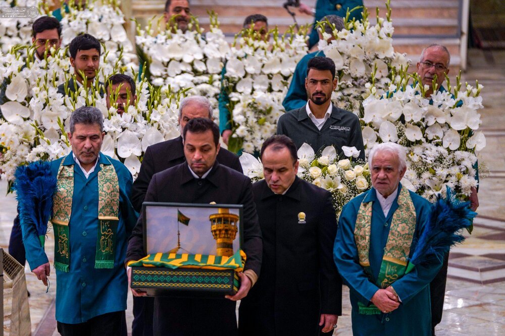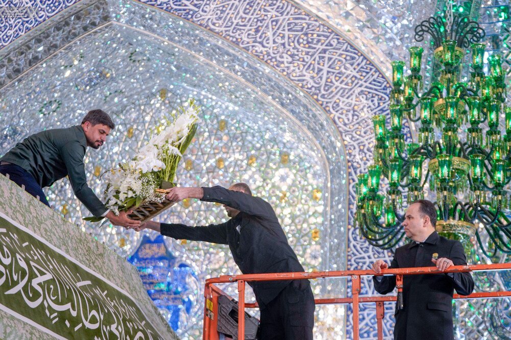 हौज़ा / पवित्र पैगंबर (स) की मेराज के अवसर पर, हज़रत अमीरुल मोमेनीन अली (अ) के मज़ार के सेवकों ने मज़ार को फूलों से सजाया।