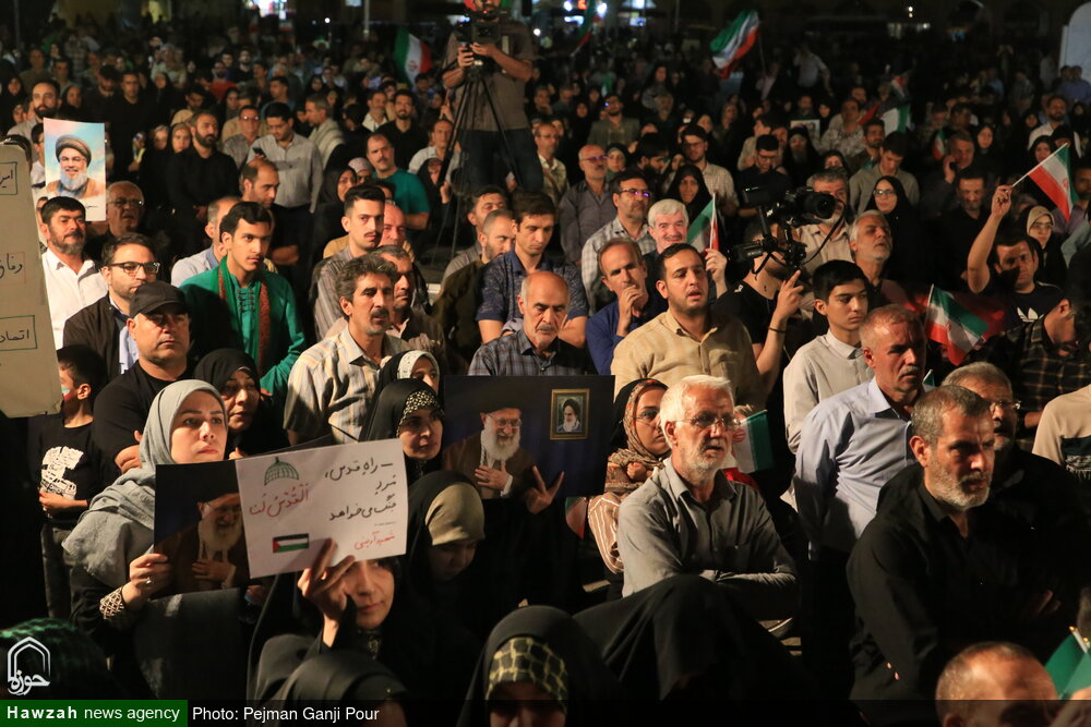 प्रतिभागियों ने "इज़राइल मुरदाबाद" और "अमेरिका मुरदाबाद" के नारे लगाए और ज़ायोनी शासन की निंदा की। उन्होंने इज़राइल के खिलाफ़ ईरानी सरकार की कार्रवाई की प्रशंसा की और और अधिक कठोर उपायों का आह्वान किया।