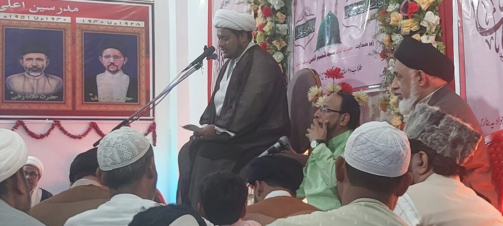 हौज़ा न्यूज़ एजेंसी, वाराणसी की रिपोर्ट के अनुसार/ पिछले वर्षों की तरह, इस वर्ष भी, इस्लामी क्रांति के सर्वोच्च नेता, हज़रत अयातुल्ला सय्यद शमीम-उल-मुत्तलिब की अध्यक्षता में, जामिया उलूम जवादिया के छात्रों, शिक्षकों और सदस्यों की ओर से, जामिया उलूम जवादिया बनारस का वार्षिक और भव्य उत्सव मंगलवार, 9 सितंबर, 2025 को मगरिब की नमाज़ के बाद आयोजित किया गया। सबसे पहले, मगरिब की नमाज़ सामूहिक रूप से अदा की गई, फिर स्थानीय और विदेशी कवियों ने पैगंबर और इमामत की उपस्थिति में निम्नलिखित पंक्तियों के माध्यम से भक्ति और प्रेम का काव्यात्मक प्रस्तुतिकरण किया।