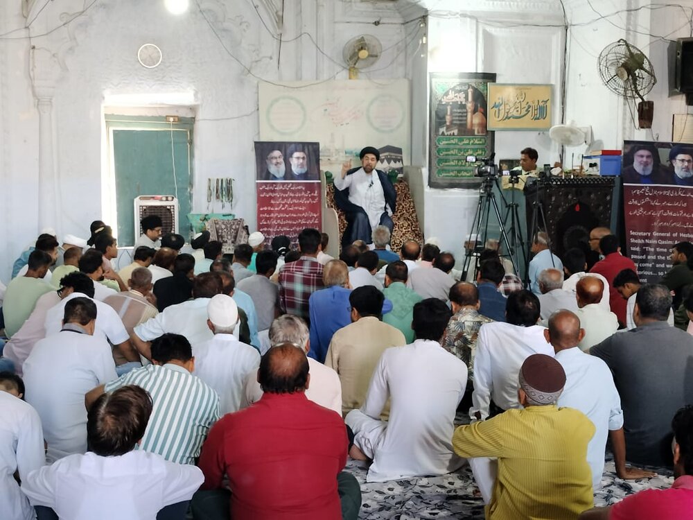 मौलाना कल्बे जवाद नक़वी ने मजलिस को संबोधित करते हुए शहादत की महानता और शहीद सय्यद हसन नसरुल्लाह के कार्यों का विस्तृत ज़िक्र किया। उन्होंने कहा कि मुसलमान पर फ़र्ज़ है कि वह मज़लूम की मदद करे, चाहे मज़लूम किसी भी धर्म और फ़िरक़े से संबंध रखता हो। उन्होंने कहा कि इस्लाम में सबसे बड़ा जुर्म ज़ुल्म है। याद रखें कि ज़ुल्म पर ख़ामोश रहने वालों का हश्र भी ज़ालिमों के साथ होगा।