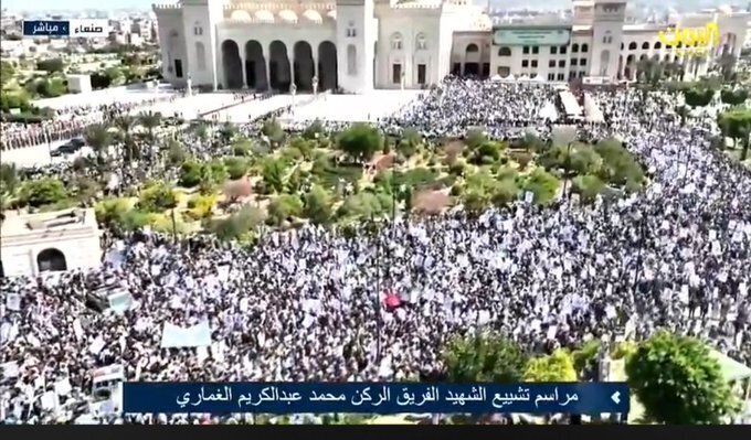 हौज़ा न्यूज़ एजेंसी के अनुसार , सना में यमनी सेना के पूर्व प्रमुख और अंसारूल्लाह कमांडर शहीद जनरल मोहम्मद अब्दुल करीम अलगुमारी उर्फ हाशिम का अंतिम संस्कार सम्मान पूर्वक किया गया। उनकी हत्या पिछले हफ्ते इजरायली हवाई हमले में उनके तेरह वर्षीय बेटे और अंगरक्षकों के साथ हुई थी।