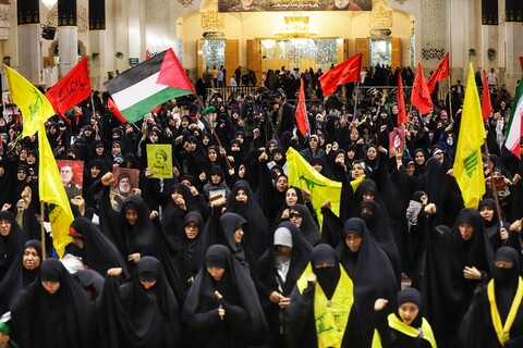 हौज़ा / हज़रत फ़ातिमा मासूमा की पवित्र दरगाह के इमाम खुमैनी (र) हाल में हुज्जतुल-इस्लाम वल-मुस्लेमीन मोमिनी के साथ "लब्बैक या ख़ामेनई" महिलाओं की एक विशाल सभा आयोजित की गई।