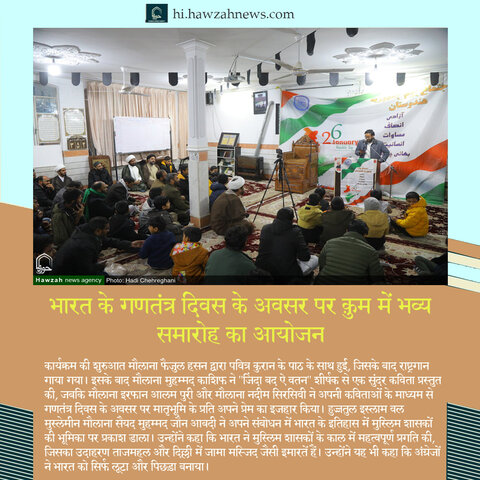 फ़ोटो/ भारत के गणतंत्र दिवस के अवसर पर क़ुम में भारतीय विद्वानों और छात्रों का भव्य समारोह