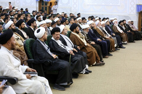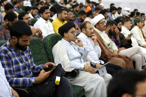 हौज़ा / भारत के विद्वानों और छात्रों के साथ फ़िक्री बैठक का एक सत्र और भारत मे सर्वोच्च नेता के पूर्व और वर्तमान प्रतिनिधि के सम्मान और महिमामंडन के लिए एक बैठक इमाम खुमैनी (र) मदरसा के सम्मेलन कक्ष में आयतुल्लाह आराफी की उपस्थिति में आयोजित की गई।