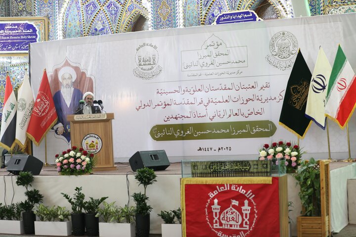 हौज़ा / इंटरनेशनल कॉन्फ्रेंस मिर्ज़ा नाईनी कर्बला में इमाम हुसैन की दरगाह पर आयोजित हुई, जिसमें आयतुल्लाह अराफ़ी और दुनिया भर के जानकार और जाने-माने लोग शामिल हुए।